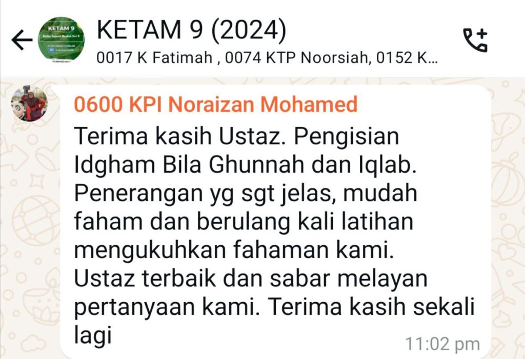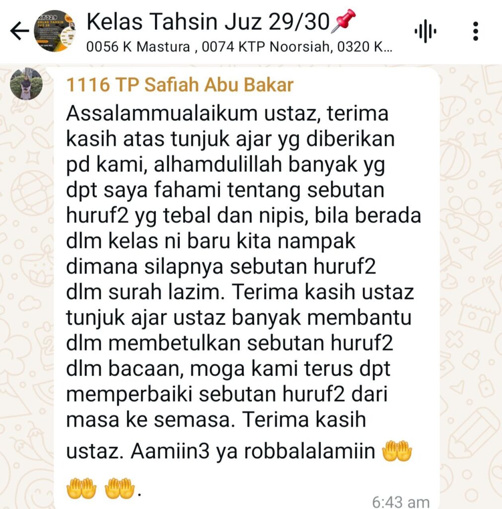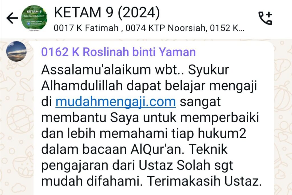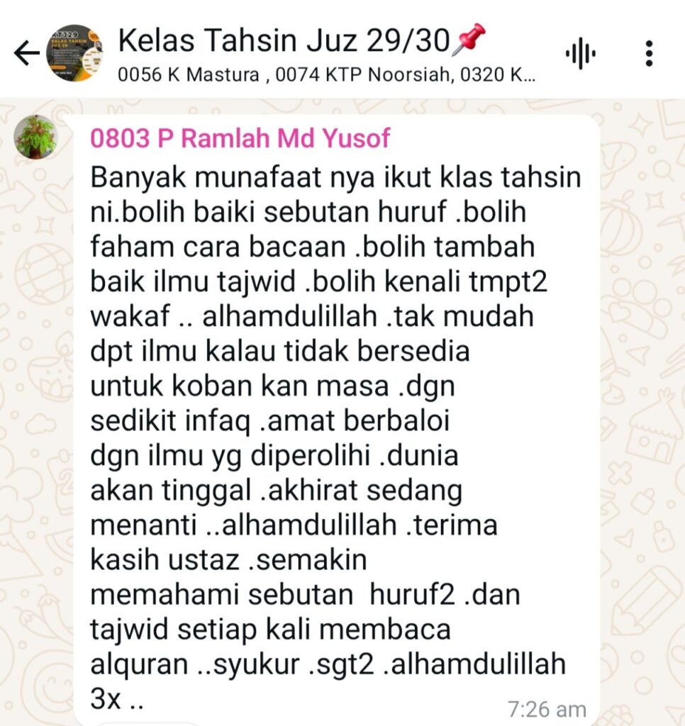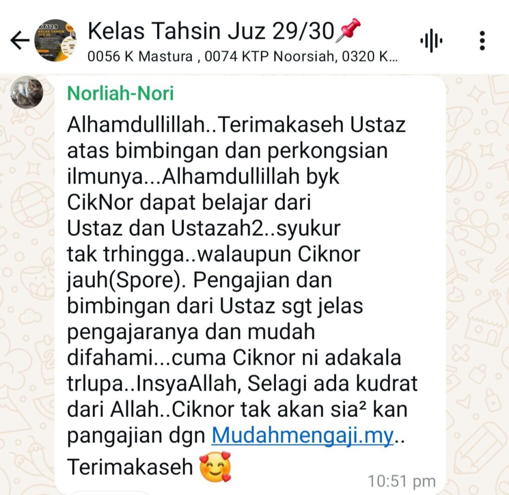 Mudahmengaji.my telah mendapat sambutan hebat dan kepuasan tinggi daripada ramai pelajar. Ini antara perkongsian pelajar kami :